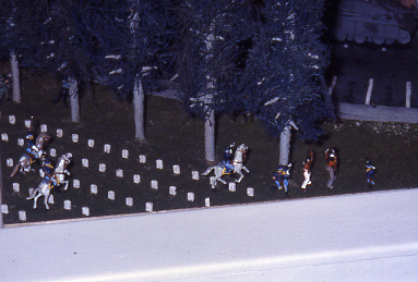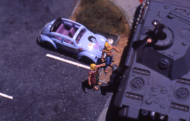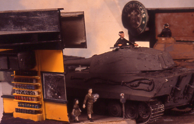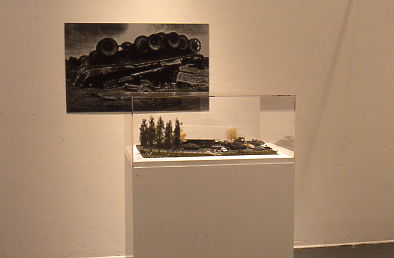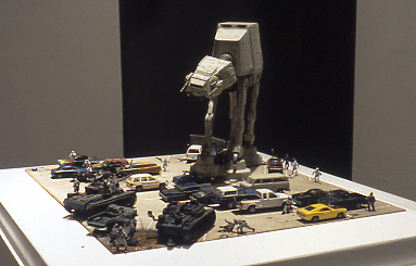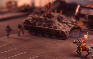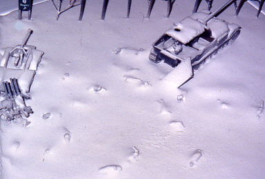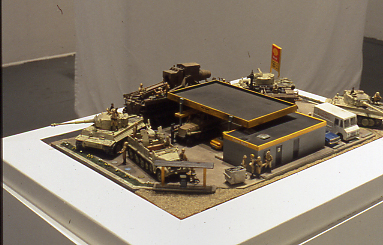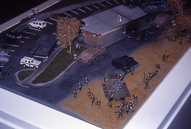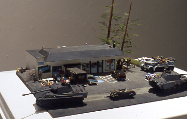 (1997-2002) Seven Dioramas and supporting materials (maps, guns, prints, etc) detailing the failed invasion of the United States by unknown forces. A variety of forces from throughout time come to our aid, but the Invaders are vinally defeated by a freak North Dakota blizzard. I did this in 1/72, 1/76 and HO scale, the result of wanting to make small art after the Think Tank. The 7-11 is the one in Fairfax, CA on Bolina Rd...