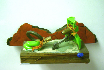 (2007) Our producer at SRL, Susan Joyce, had a great project space in China Town, LA. She let me take over the basement with these found object dioramas and my video "Oakland Flow." Thanks to M.C. Wilson and A.C. Stricker for the help on the video, to Kal Spelteich for holding down the fort upstairs, and to Oakland for providing the trash...
